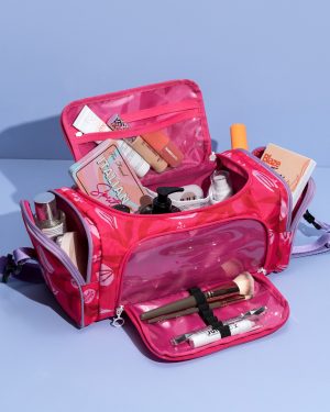 Cuenta con varios compartimentos amplios para clasificar tus accesorios, productos de cuidado personal o maquillaje. Su manija y correa ajustable permiten llevarlo en la mano o terciado, brindando comodidad y versatilidad.