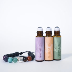 Aceite esencial de Limón: Frescura y energía. – Aceite esencial de Lavanda: Serenidad y Paz. -Aceite esencial de Romero: Concentración y confianza. –Aceite esencial de Eucalipto: Claridad al respirar y al pensar.