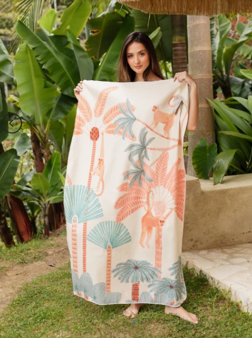 Toalla estampada de microfibra, incluye elástico para colgarla y facilitar su secado, vienen en empaque de tela para que la lleves a todas partes!