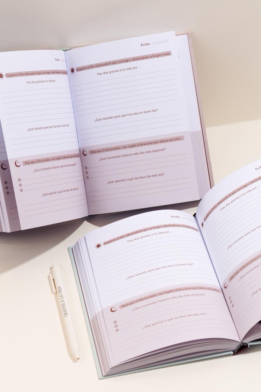 Tiene 216 páginas con preguntas para la mañana y la noche que te ayudan a empezar el día con intención, valorar los momentos que viviste y reflexionar sobre lo que aprendiste. Y al final del libro páginas de escritura libre.
