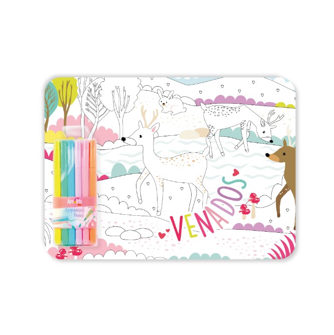 ¡Disfruta coloreando el individual con el mundo de tu personaje favorito! Colorea con marcadores, bórralo y vuélvelo a colorear las veces que quieras.